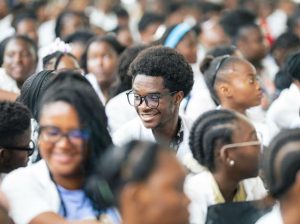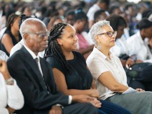 La gratitude a également constitué un thème central de la réflexion. Les étudiants ont rappelé que Dr Aristide avait exprimé sa reconnaissance envers les membres du conseil d’administration, le corps professoral, les parents des diplômés ainsi que son épouse, Mildred Aristide.